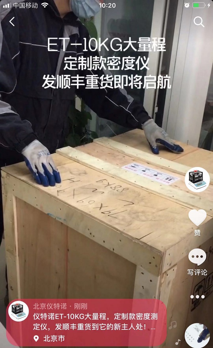 ET-10KG大量程密度測(cè)定儀發(fā)順豐重貨到它新主人處。