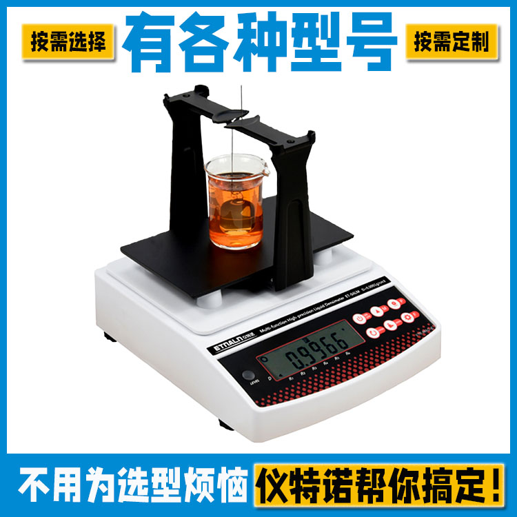 1、將盛有樣品的測量杯放于測量放置板上,扣除掛鉤的重量。