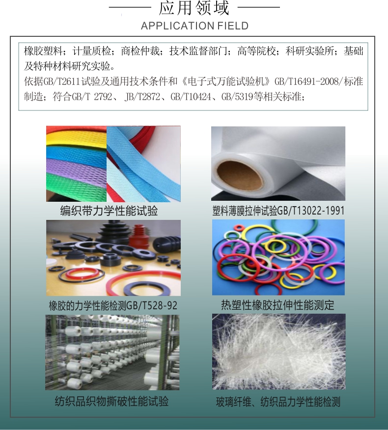 YTN-D系列單柱拉力試驗(yàn)機(jī)不僅適用于橡膠塑料、電子電器、汽車生產(chǎn)等傳統(tǒng)行業(yè),還廣泛應(yīng)用于航空航天、醫(yī)療器械、能源電池等高科技領(lǐng)域。無論是基礎(chǔ)材料的研發(fā),還是特種材料的性能測試,YTN-D系列都能提供可靠的測試支持。