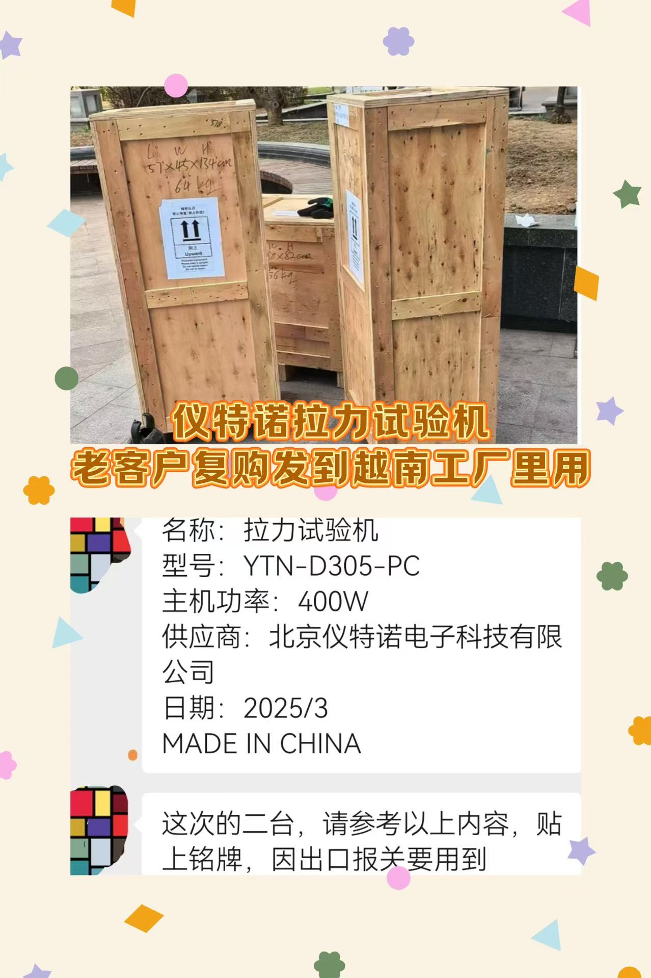 這周,我們又打包了兩臺(tái)單柱拉力試驗(yàn)機(jī)發(fā)給老客戶,而他們還是要再發(fā)往越南的工廠。這不是他們第一次下單了,但每次收到復(fù)購(gòu)消息時(shí),我們依然覺得特別踏實(shí),老朋友的信任,比任何廣告都更有分量。